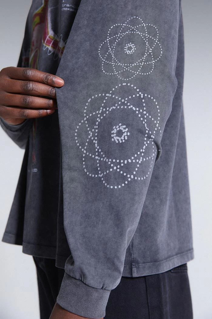 Energy Orb Print Acid Wash Long Sleeve Top