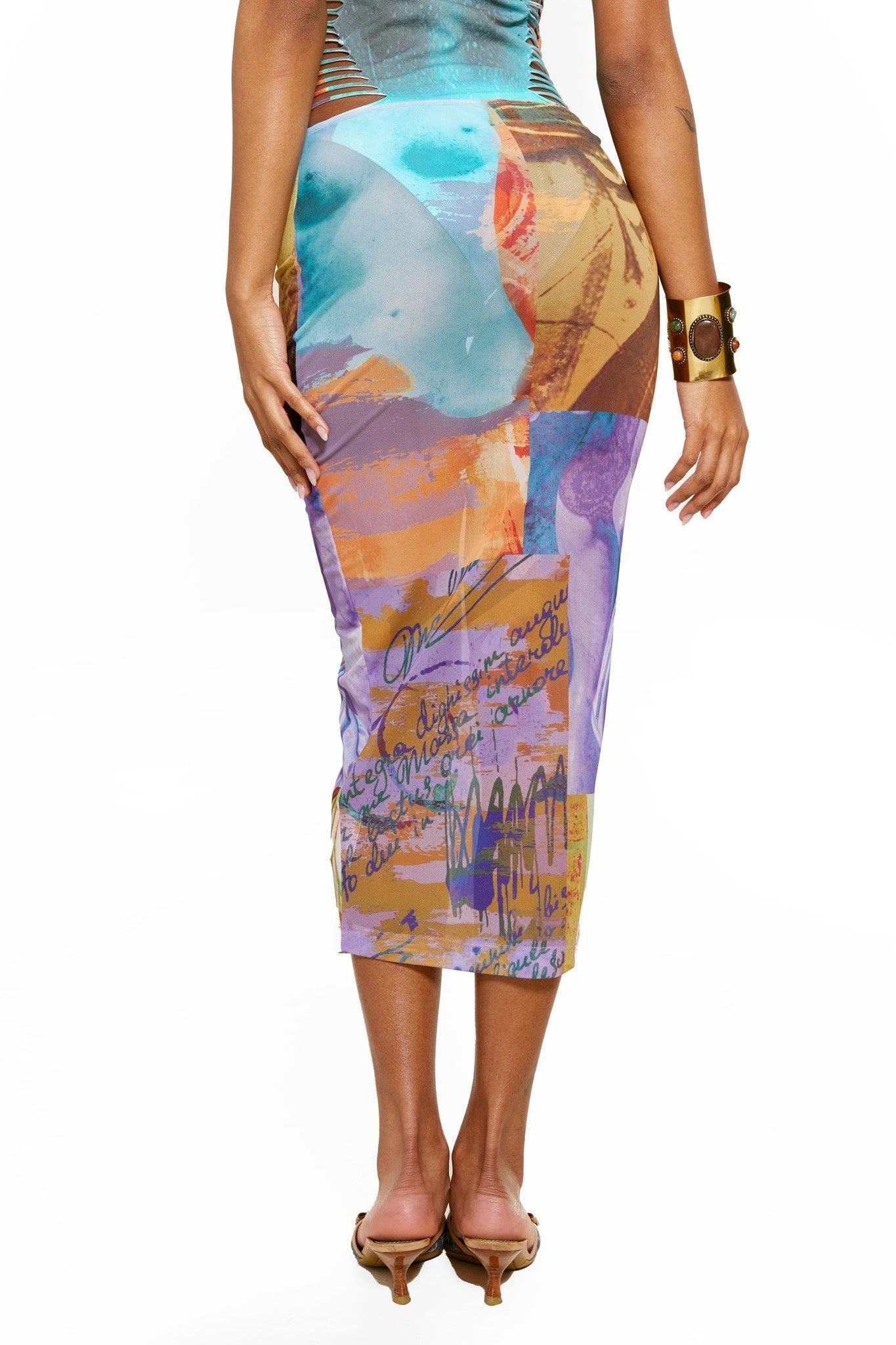 Statue Mix Print Mesh Column Maxi Skirt