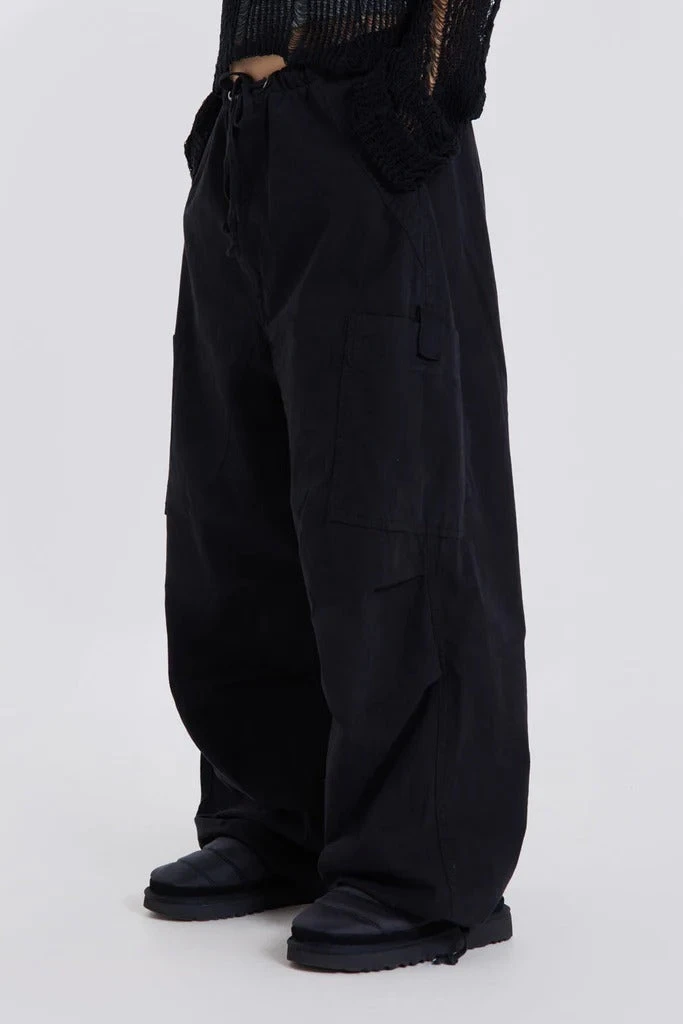 Jaded London Black Parachute Cargo Pants