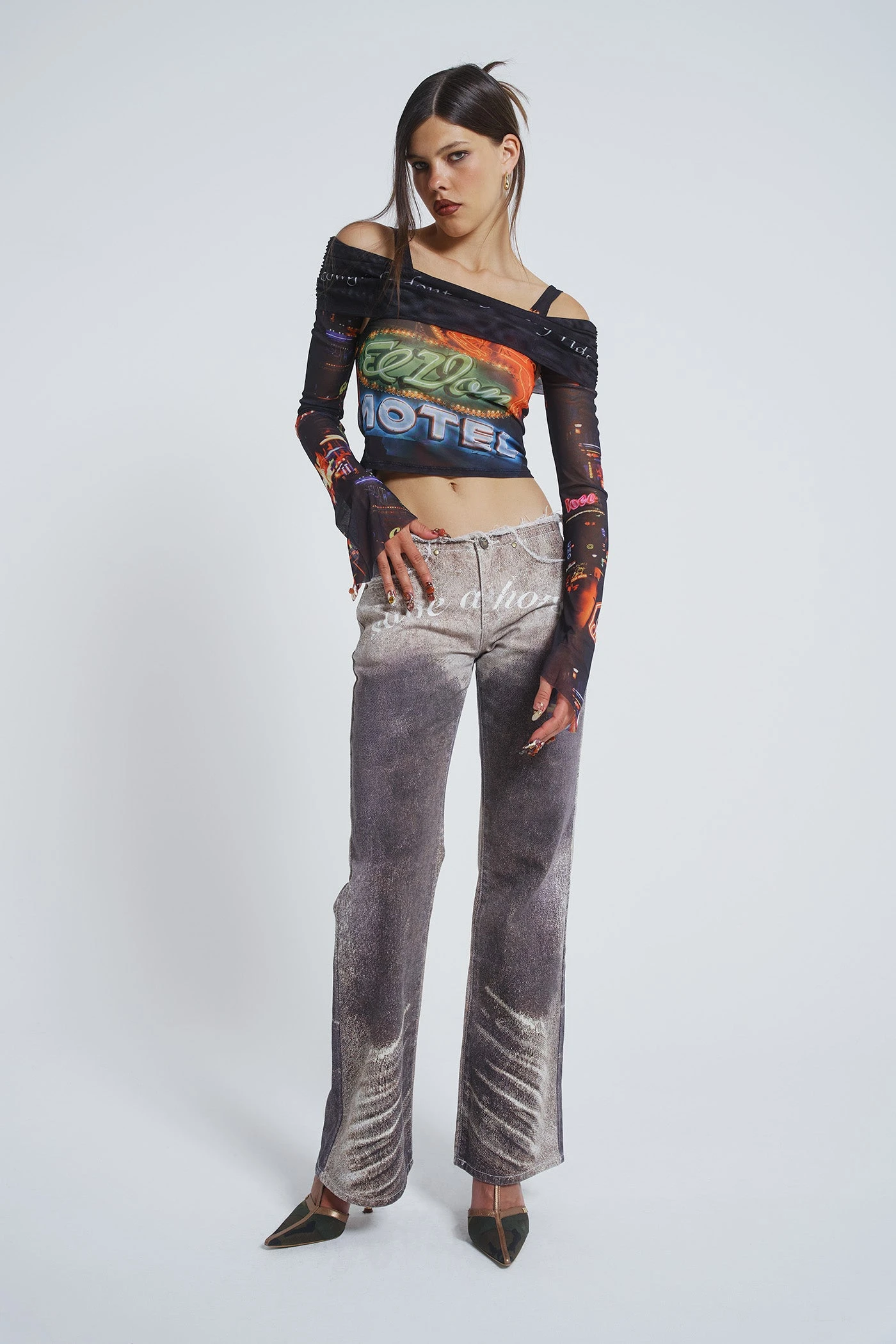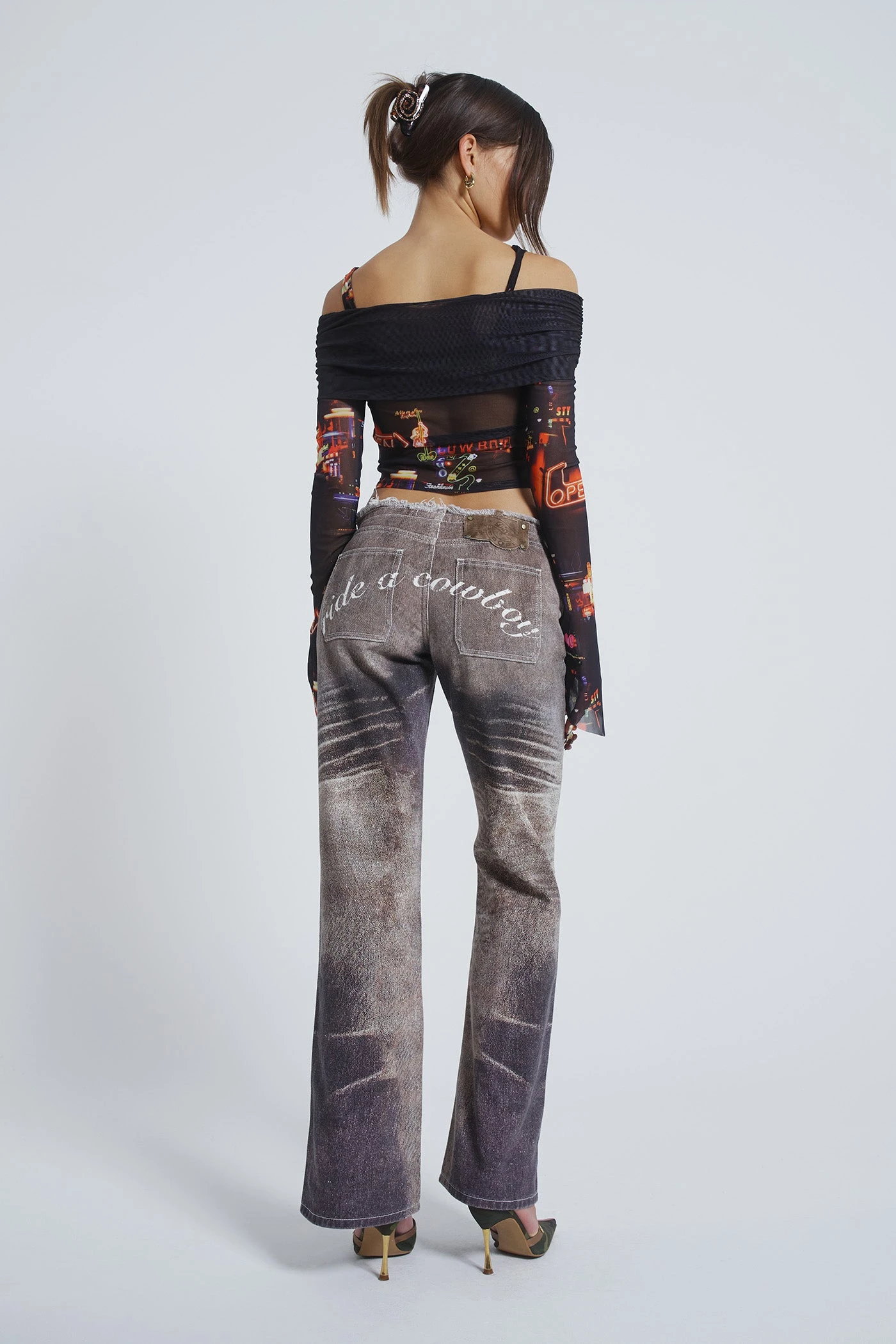 In collaboration with independent brand Cowboys of Habit, we bring you a 13 piece modular collection, designed with multi-wear and western influence at the forefront. With promiscuous charm, inspired by satire and millennial humour, the range includes playful slogans and loud graphics amongst 3 in 1 denim jumpsuits and reversible dresses.