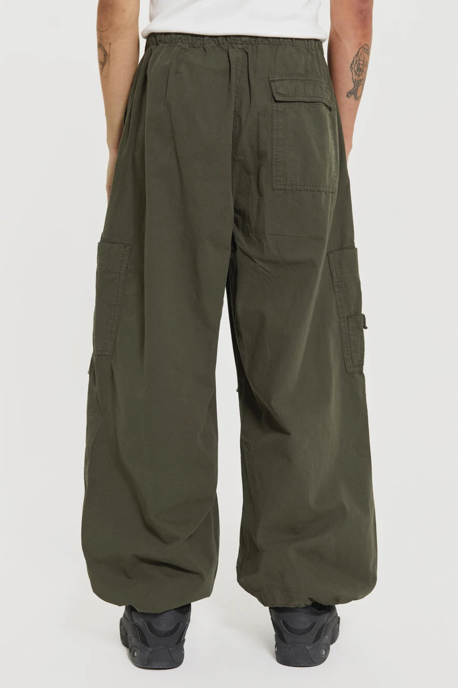 Designed with an oversized fit and a combination of metal eyelets, zip fly and adjustable cotton drawcord, our Khaki Parachute Cargo Pants deliver refined luxury and ultimate comfort. Details such as a pleated knee and inside leg darts ensure a perfect fit, while a six-pocket styling and a unique airpod pocket provide functional convenience. Elevate any look with this timeless and classic silhouette.