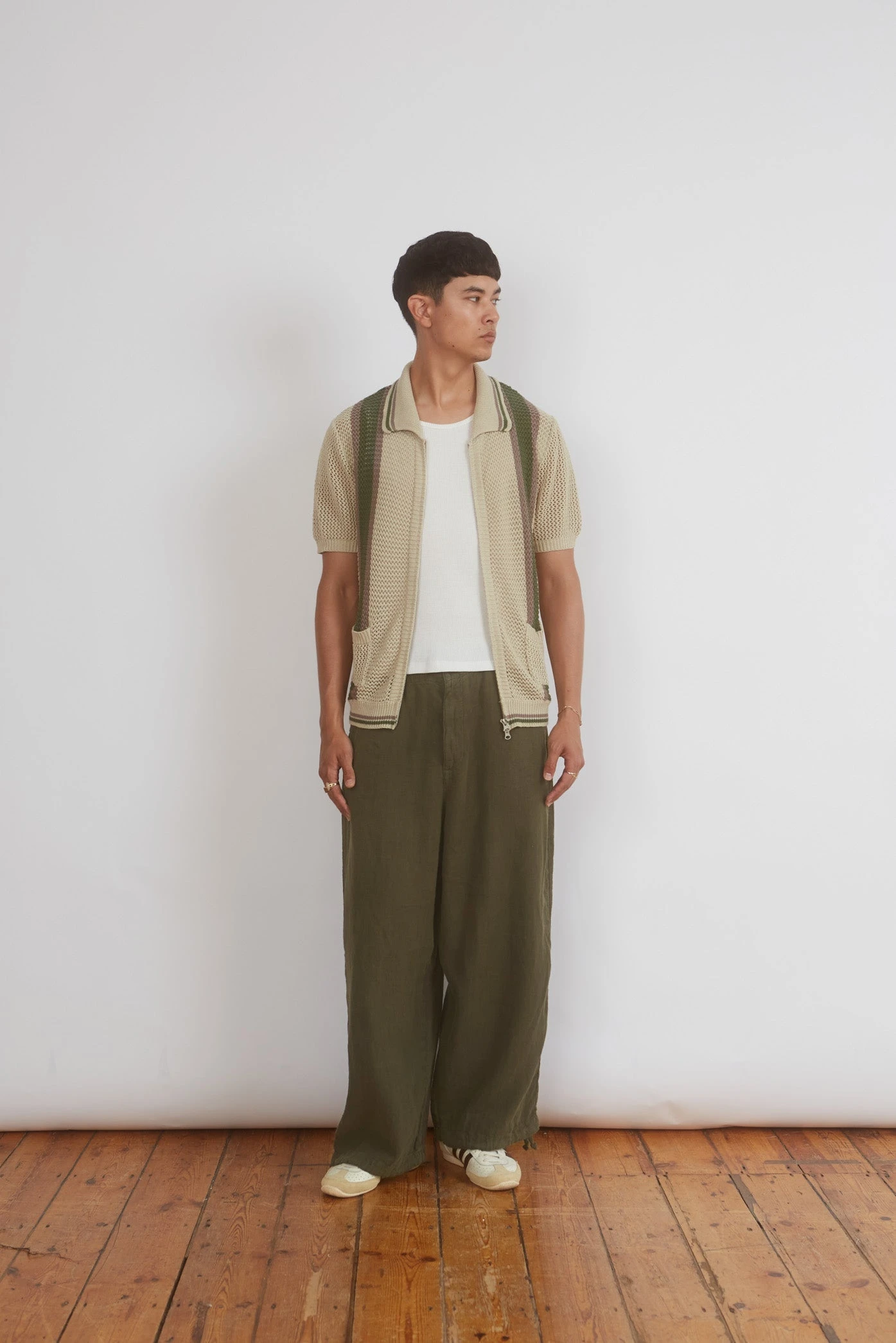 Oatmeal Zip Through Knit Polo